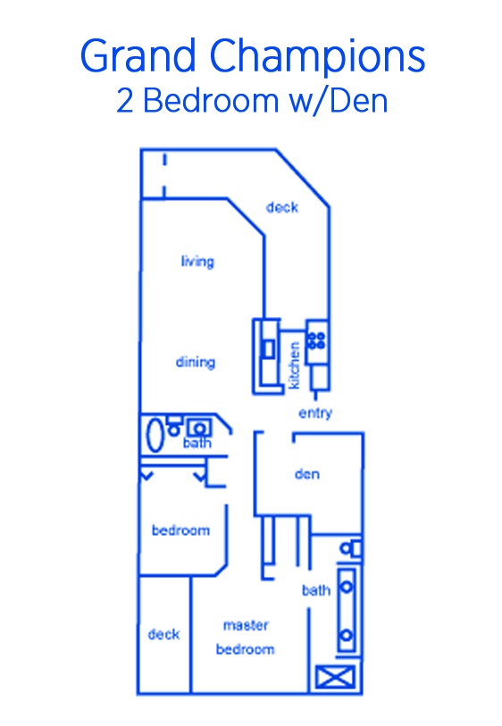 There are several different floorplans available at Grand Champions, including a desirable 2-bedroom "Lock off" unit.