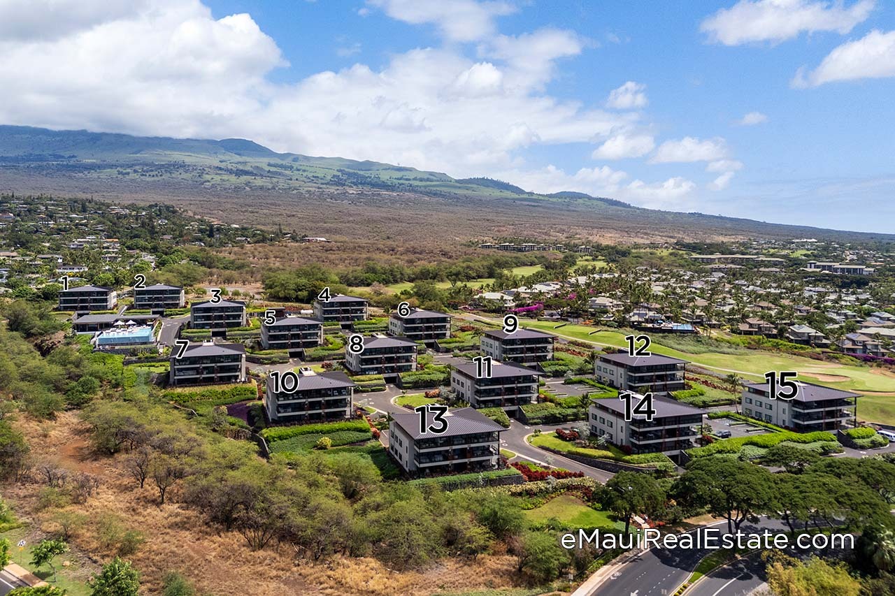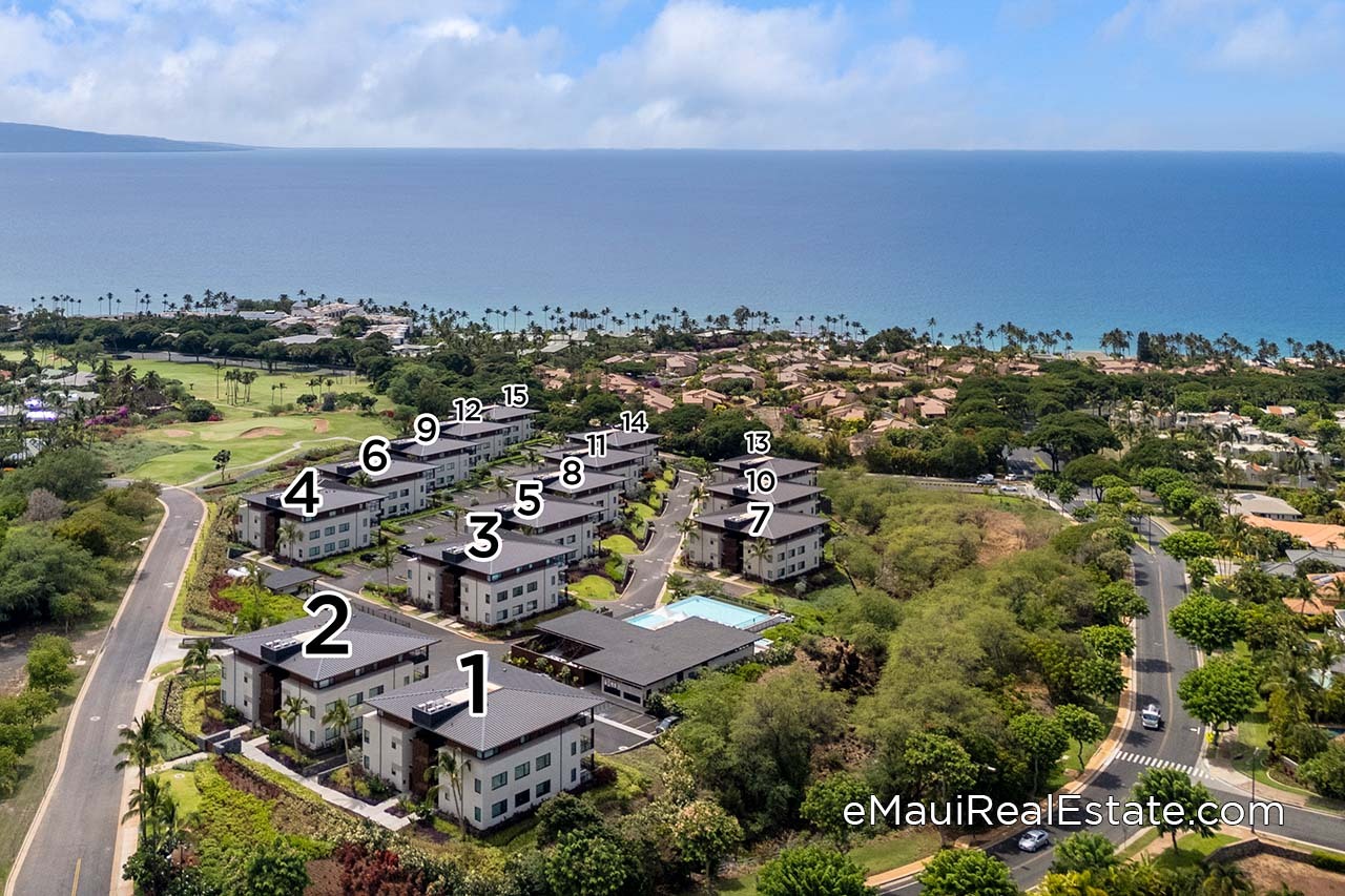 La'i Loa is the newest Wailea condo development which completed construction in 2024. There are a total of 15 buildings in the community with buildings #1 and #2 positioned at the highest elevation. Each building houses 5 units along with a below-ground secure parking garage and storage units.