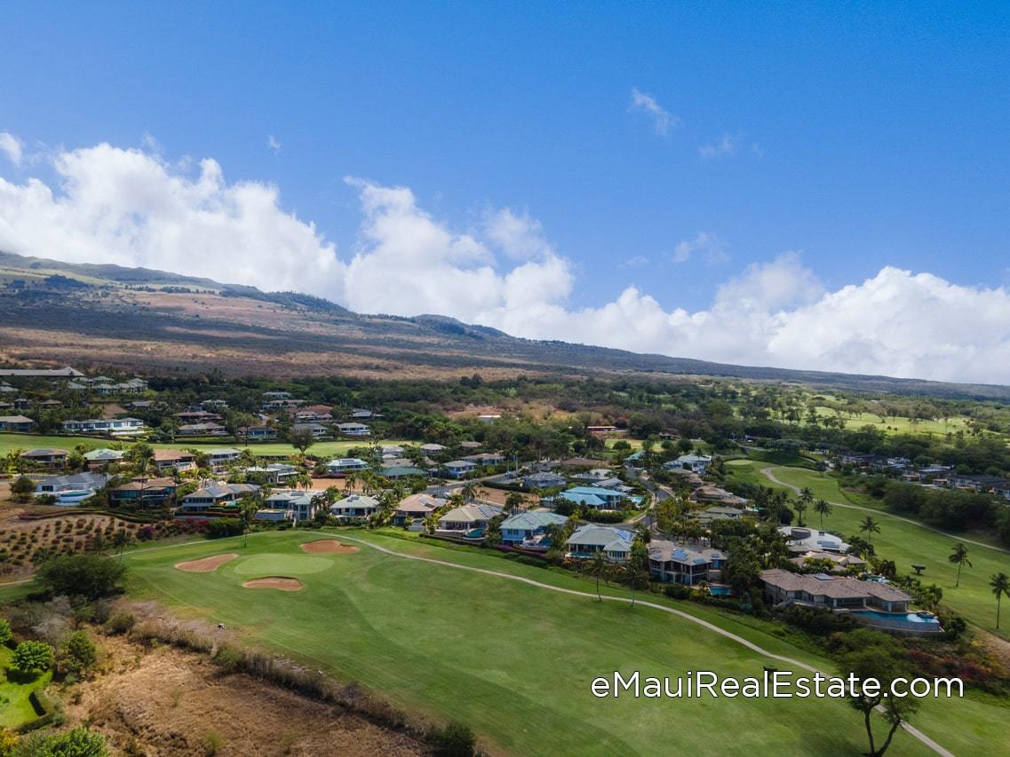 Wailea Golf Vistas has 48 home lots available on a plot of land that is about 17 acres. The neighborhood is almost completely surrounded by the beautiful Wailea Blue Golf Course (known by locals as the “Grand Lady of Wailea”) and is located above the Fairmont Kea Lani Resort. The entrance to the Wailea Golf Vistas can be found by taking the first left into the gate after driving up Kaukahi Road. The sizes of the lots range from 11,000 to about 18,000 square feet. The Vistas facing to the west and southwest offer the best views in the neighborhood.