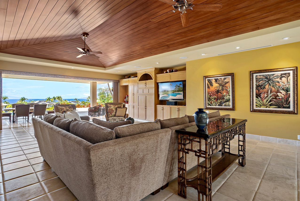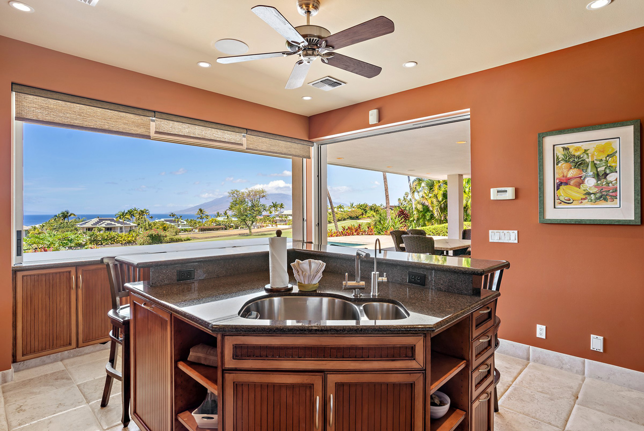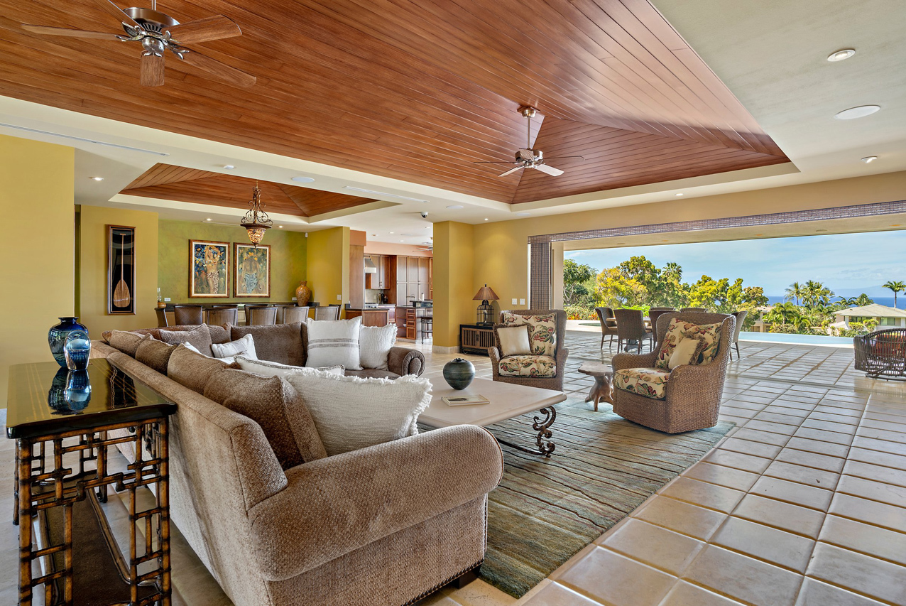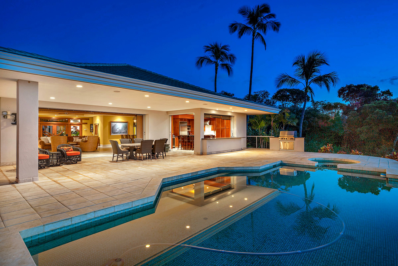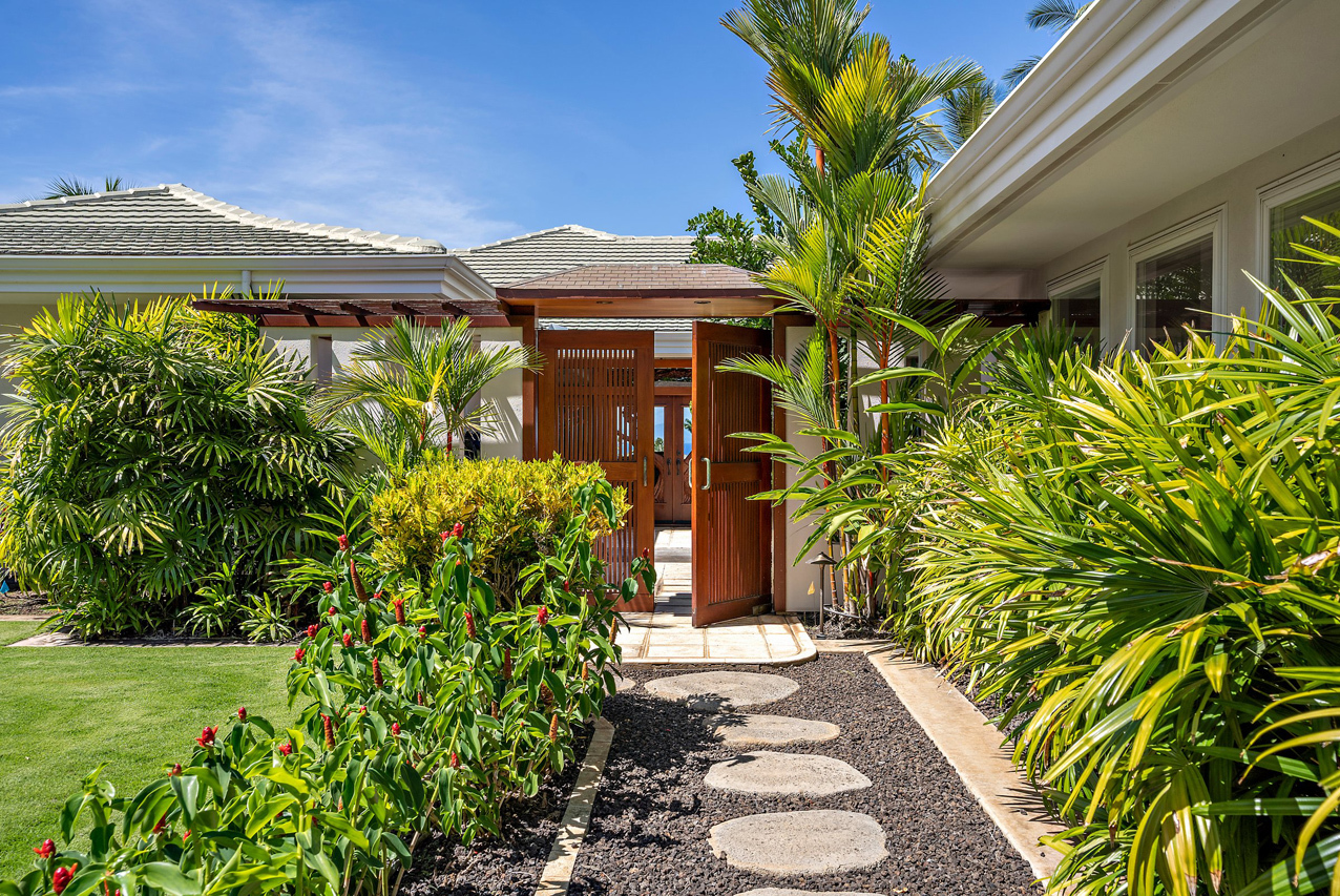 256 Noho Like Way in Wailea Highlands offers you the rare opportunity to savor Wailea living raised to a higher elevation. This single-level, 4 bedroom home has graceful architecture designed to embrace the panoramic ocean views and create a relaxing retreat-like atmosphere. Greet the morning by walking out from your master suite onto the spacious, 600sqft lanai to take a refreshing swim in the infinity-edge pool and marvel at the views of the ocean, West Maui mountains and fairways of the pristine Wailea golf course. Lanai is perfectly oriented to enjoy sunset views year round and ample roof coverage over the lanai means you can enjoy the outdoors all day long. This private and peaceful half-acre estate is adorned with verdant tropical landscaping and features an elegant entry courtyard graced with impressive carved wood double front doors with a beautiful tree motif. The grand living room has high vaulted ceilings and features a large-panel retracting pocket door to seamlessly connect with the covered outdoor dining area on the lanai. Each of the four bedrooms feels like its own private retreat with ensuite bath, spacious layout, plush island-style furnishings and lanai access. Kitchen features timeless plantation-style cabinetry, granite countertops, a gas range, stainless steel appliances. This Iconic Setting is famous around the world for its pristine weather and access to the best lifestyle in Hawaii. Nearby are all of Wailea's many amenities, including first-class restaurants, 3 championship golf courses, tennis facilities, and miles of white sand beaches and ocean recreation.