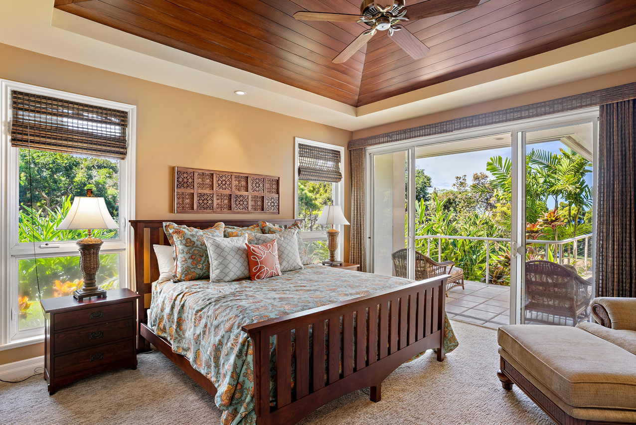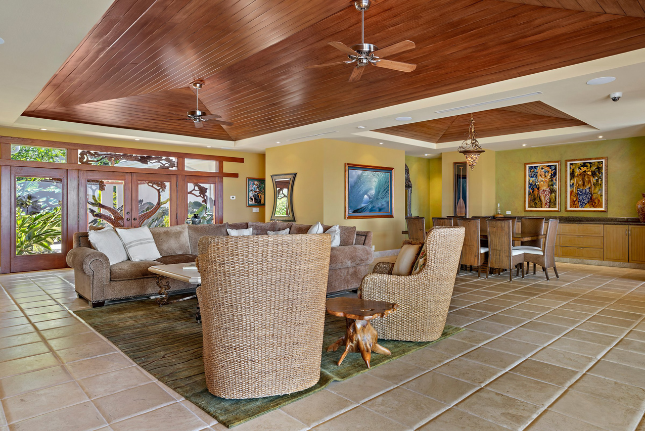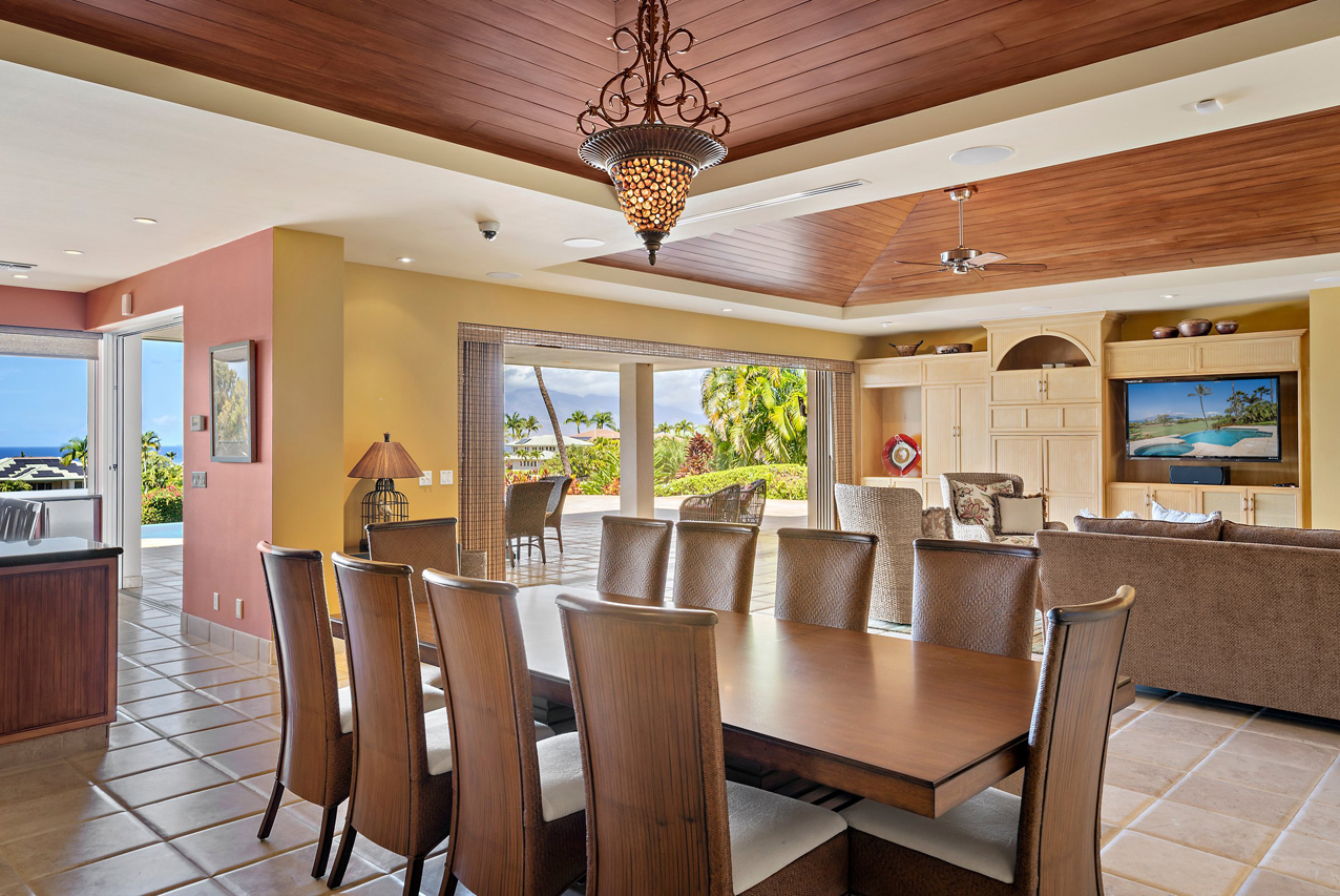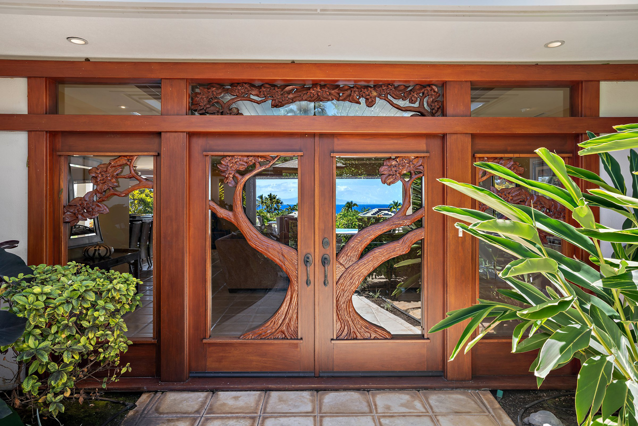 256 Noho Like Way in Wailea Highlands offers you the rare opportunity to savor Wailea living raised to a higher elevation. This single-level, 4 bedroom home has graceful architecture designed to embrace the panoramic ocean views and create a relaxing retreat-like atmosphere. Greet the morning by walking out from your master suite onto the spacious, 600sqft lanai to take a refreshing swim in the infinity-edge pool and marvel at the views of the ocean, West Maui mountains and fairways of the pristine Wailea golf course. Lanai is perfectly oriented to enjoy sunset views year round and ample roof coverage over the lanai means you can enjoy the outdoors all day long. This private and peaceful half-acre estate is adorned with verdant tropical landscaping and features an elegant entry courtyard graced with impressive carved wood double front doors with a beautiful tree motif. The grand living room has high vaulted ceilings and features a large-panel retracting pocket door to seamlessly connect with the covered outdoor dining area on the lanai. Each of the four bedrooms feels like its own private retreat with ensuite bath, spacious layout, plush island-style furnishings and lanai access. Kitchen features timeless plantation-style cabinetry, granite countertops, a gas range, stainless steel appliances. This Iconic Setting is famous around the world for its pristine weather and access to the best lifestyle in Hawaii. Nearby are all of Wailea's many amenities, including first-class restaurants, 3 championship golf courses, tennis facilities, and miles of white sand beaches and ocean recreation.