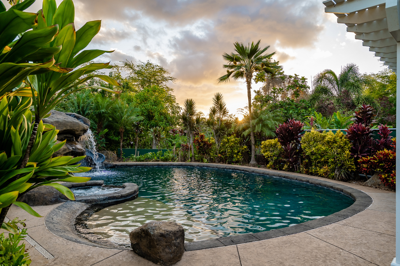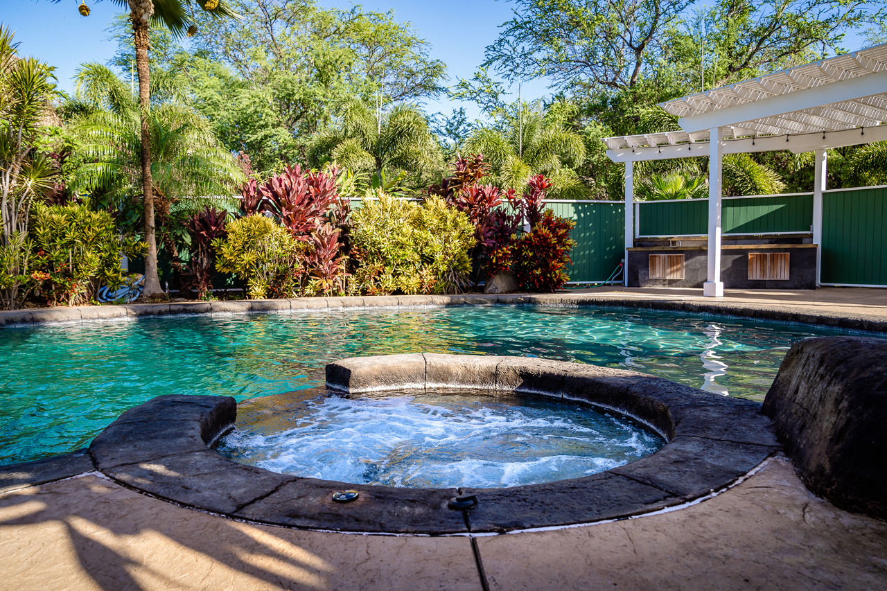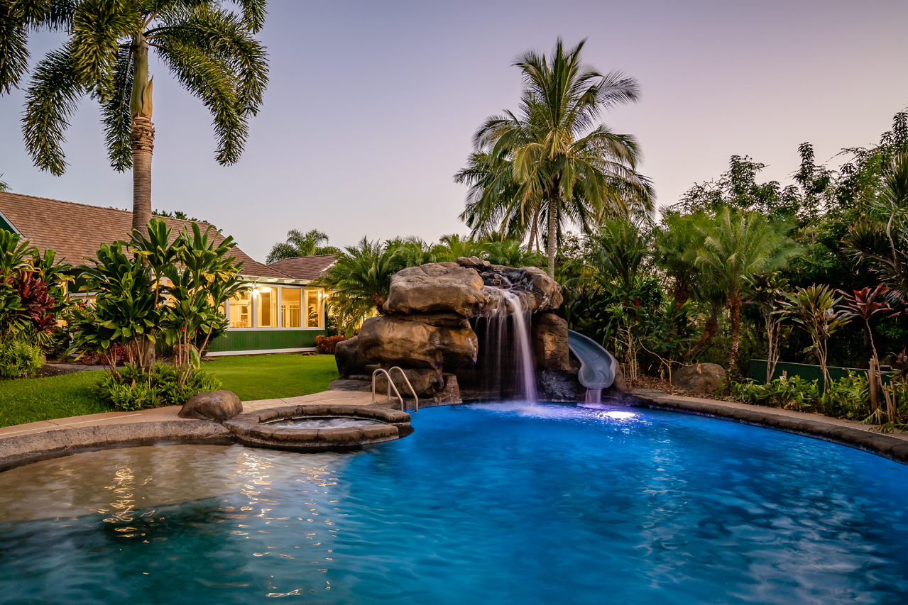 The Enchanting Emerald perfectly set in Magnificent Makena, Maui. A once in a lifetime opportunity to own in one of the most highly sought after locations on the island, a private gated enclave across the street from the golden sands of Big Beach, Makena! This legacy property exemplifies the ideal union of modern amenities with the charming architectural character of a historic Plantation-style home. Every inch of this nearly 1 acre estate has been thoughtfully designed to maximize comfort & convenience so you can live your ideal Hawaii lifestyle. Careful attention went into every detail of construction and design to create a 5 bedroom, 4.5 bathroom custom residence that seamlessly integrates into the native landscape for graceful indoor/outdoor living. The soothing sounds of the nearby waves enhance the ambiance of this most peaceful setting. Take a refreshing swim in the resort-style pool which has a custom-built waterfall with waterslide. Revel in majestic mountain views while lounging on the elevated relaxation deck or have some fun at the custom putting-green! The grand living room, with high 20-foot vaulted ceilings, is the inviting central hub which connects the different private wings of the home. Two spacious master suites, one on the South wing and one on the East wing, each feel like their own private oasis. The North wing has a family/entertainment room which connects 3 bedrooms and 2 bathrooms. Sliding glass doors off the living room connect to the West wing which is an elegant, 30-foot enclosed lanai with french doors. Interior features include a brand new A/C system, pine wood flooring, custom lighting, granite countertops, and top of the line high energy efficient appliances in the chef’s kitchen. Natural splendors outside include manicured gardens, mature fruit trees, and lush tropical landscaping, perfectly framed with extensive lava-rock walls.Â