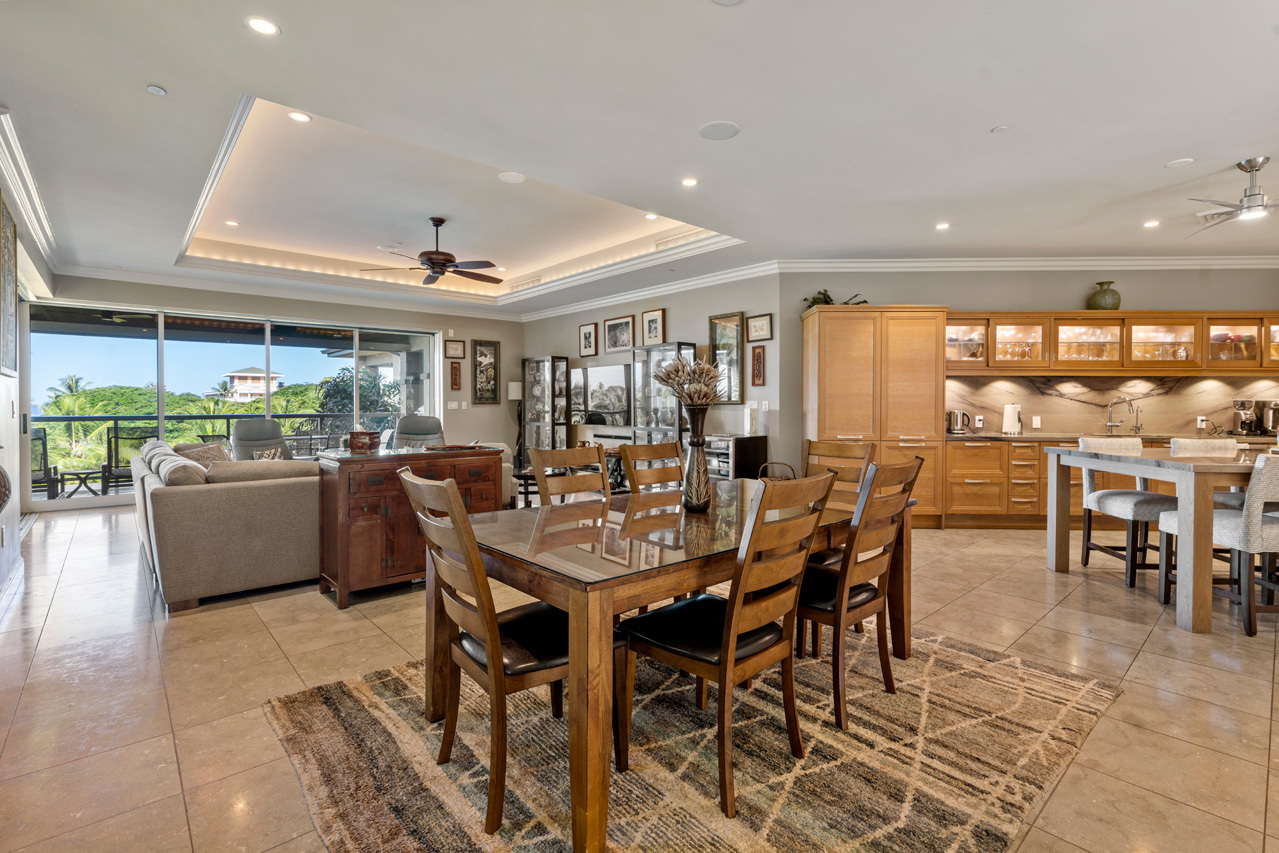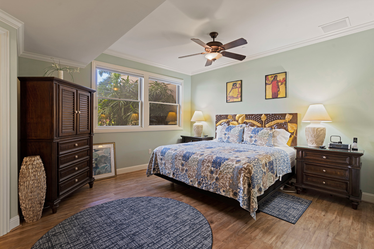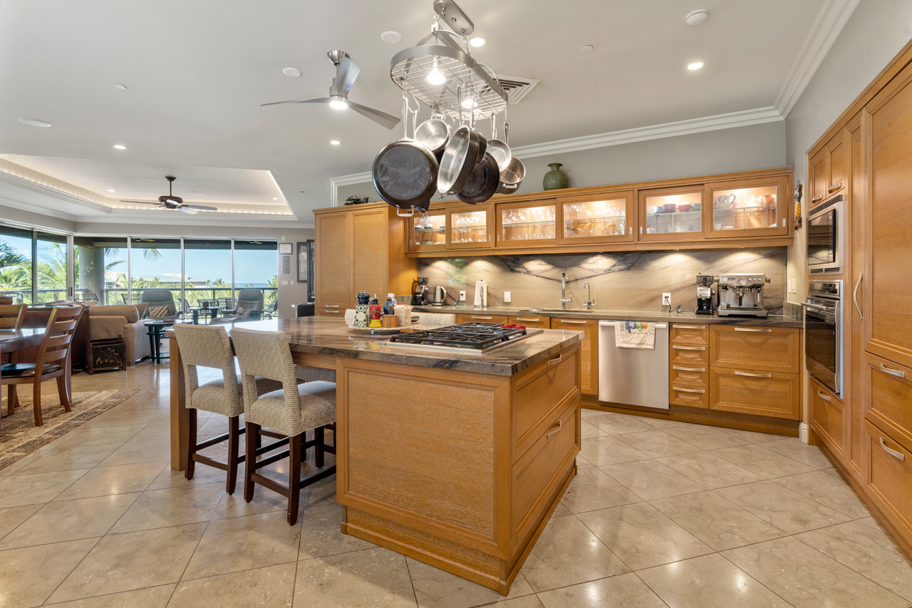 Savor the grand location of Ho'olei Villa 93-6 which is gracefully positioned above the impressive waterfall of the resort-class community pool. In the daytime you can marvel at the beautiful ocean views and in the evening relax with sounds of the waterfall while enjoying luminous vistas of the lush tropical pool lit by romantic torch-lights. In addition to its iconic prime location, Villa 93-6 also offers the largest and most sought-after floor plan with more than 3,000 square feet of living space and 686 sqft of covered, wrap-around lanai space. The ideal pairing of modern luxury combined with carefree island living, this 3 bedroom townhome has been upgraded to be the perfect tropical home or luxurious resort caliber vacation rental. Interior upgrades to this home include plush designer furnishings, wood floors in all of the bedrooms, and a contemporary chef's kitchen which is perfect for entertaining. You and your guests can enjoy a unique experience with benefits and resort amenities while living in Villa 93-6. Nearby are all of Wailea's many resort luxuries including the best beaches on Maui, elite shopping opportunities, first class restaurants, golf courses, and miles and miles of ocean recreation!