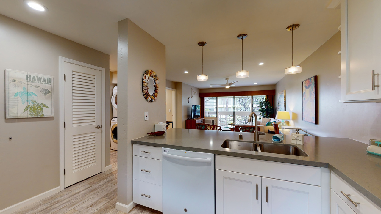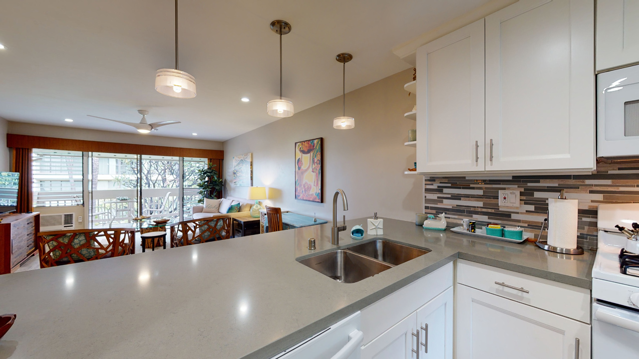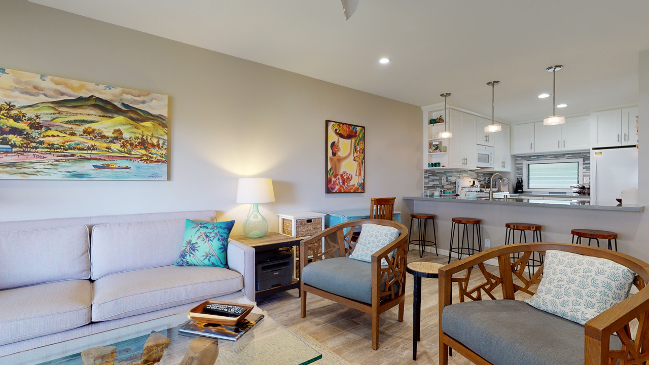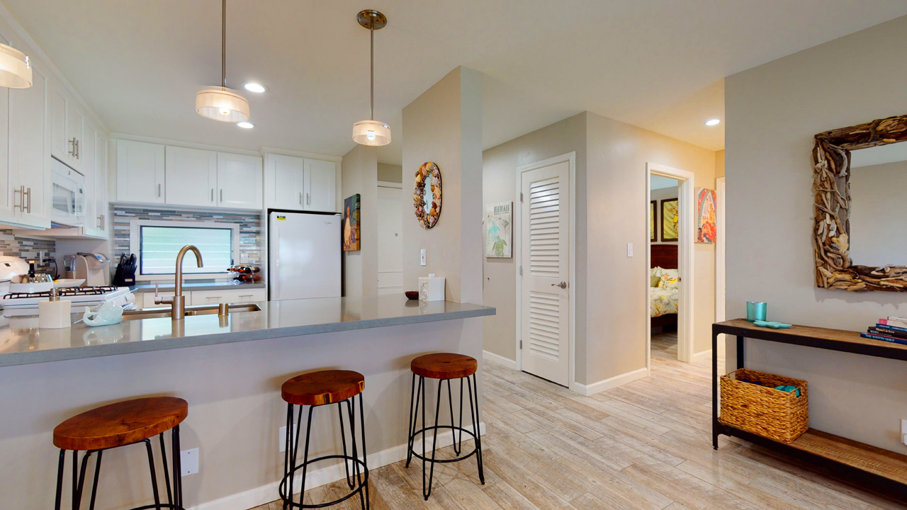 Exciting opportunity to own a rarely-available 2br/2ba unit on the second floor in the desirable "B" building. Convenient location for quick and easy access to the pool or take a quick stroll to the nearby sandy beach of Kamaole Beach Park II. The B building is surrounded by lush landscaping and offers relaxing garden views. This unit has been completely remodeled and shows great pride of ownership. Interiors are tastefully modern and create a warm, inviting atmosphere. Brand new appliances featured throughout the kitchen including a gas stove. Elegant Silestone countertop surfaces in the kitchen as well as the bathroom vanity. Tiled walk in shower with custom finishes throughout. Kaba entry locks with convenient Wi-Fi operation. Flooring in the unit is an easy-care porcelain tile with a lovely modern driftwood style. Kihei Akahi is highly regarded as one of the best vacation rental complexes in all of South Maui. Owners have the flexibility to own, vacation, and rent! You and your guests will enjoy the pools, BBQ areas, and the full size tennis court! World Class shopping, tennis, golf, diving, and boating are all very accessible in this highly sought after resort area. Don't miss out on this opportunity to own your perfect piece of paradise!