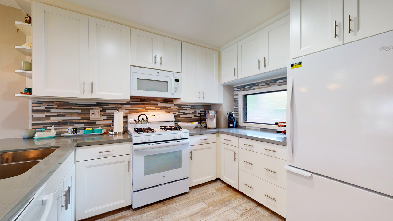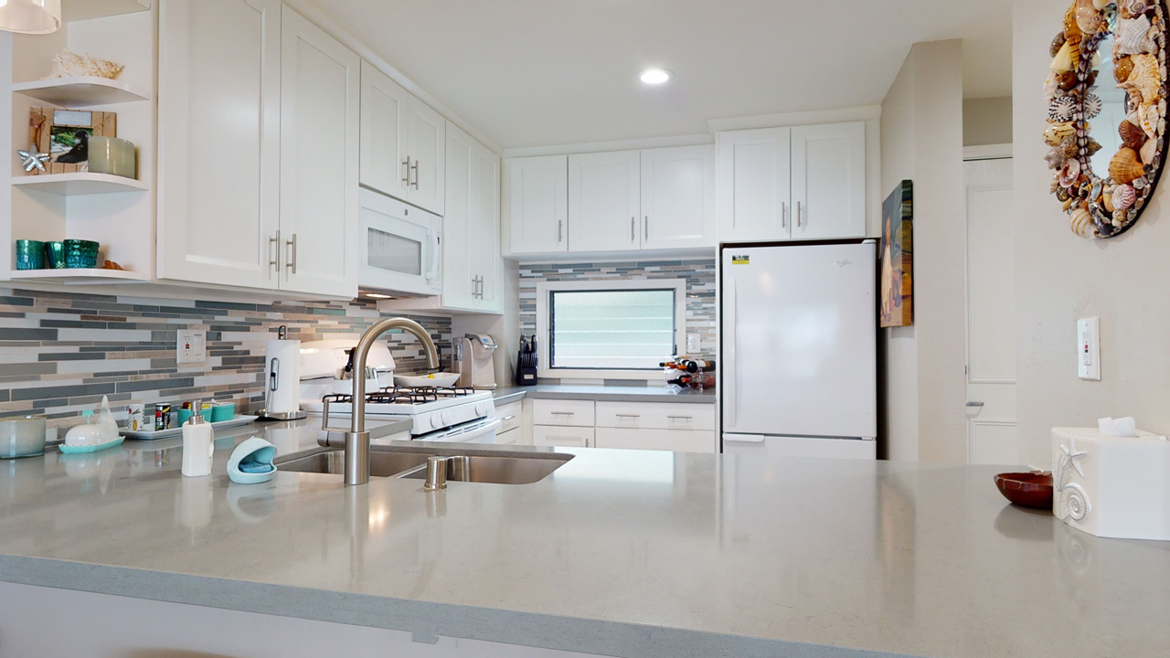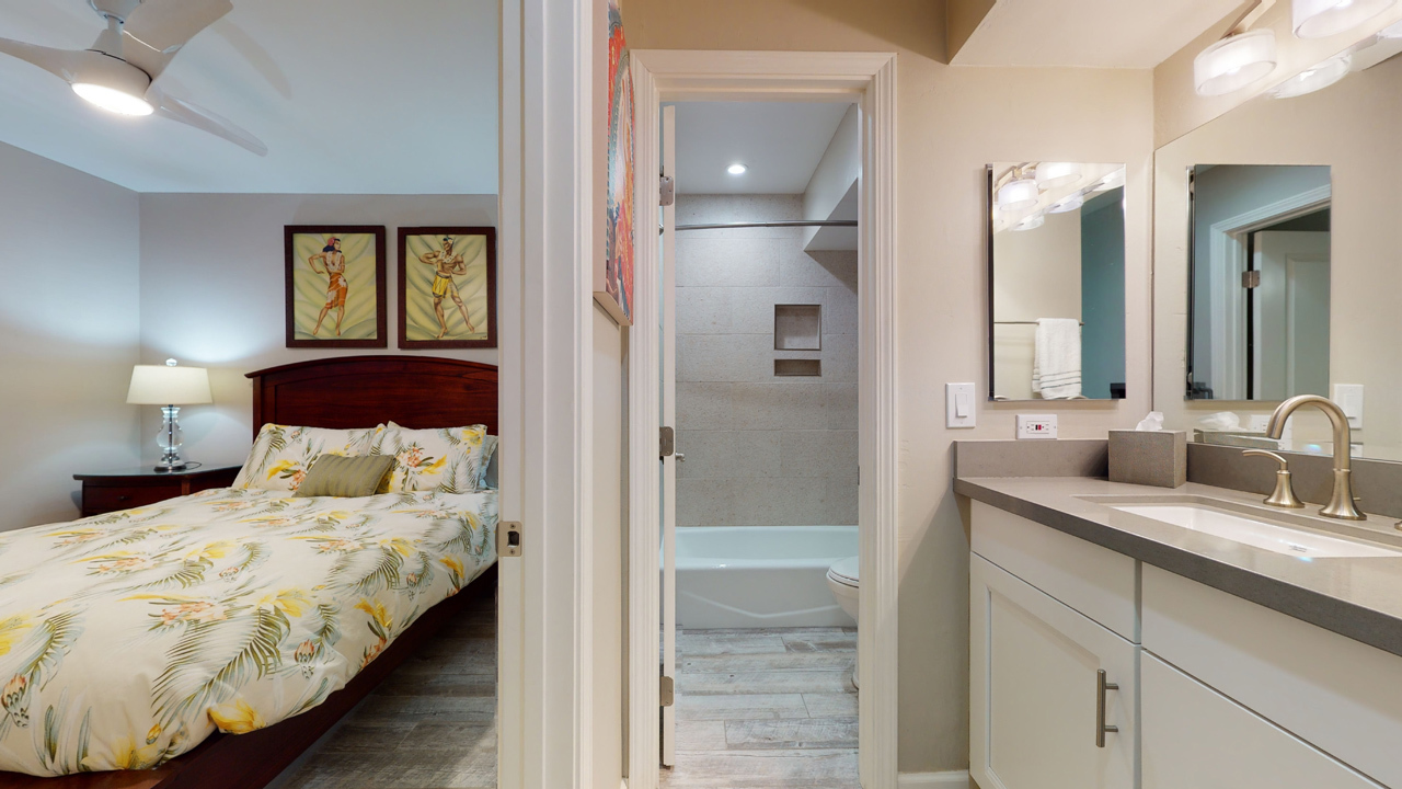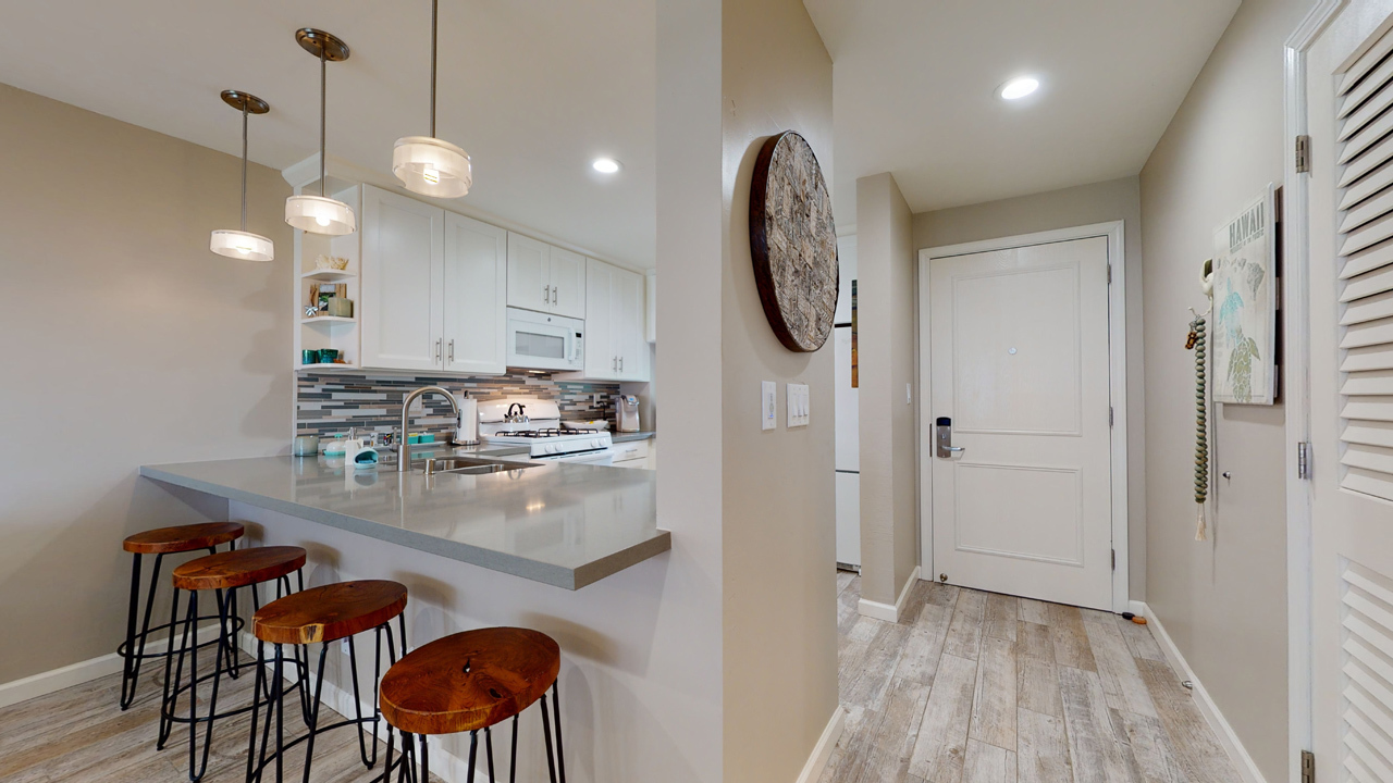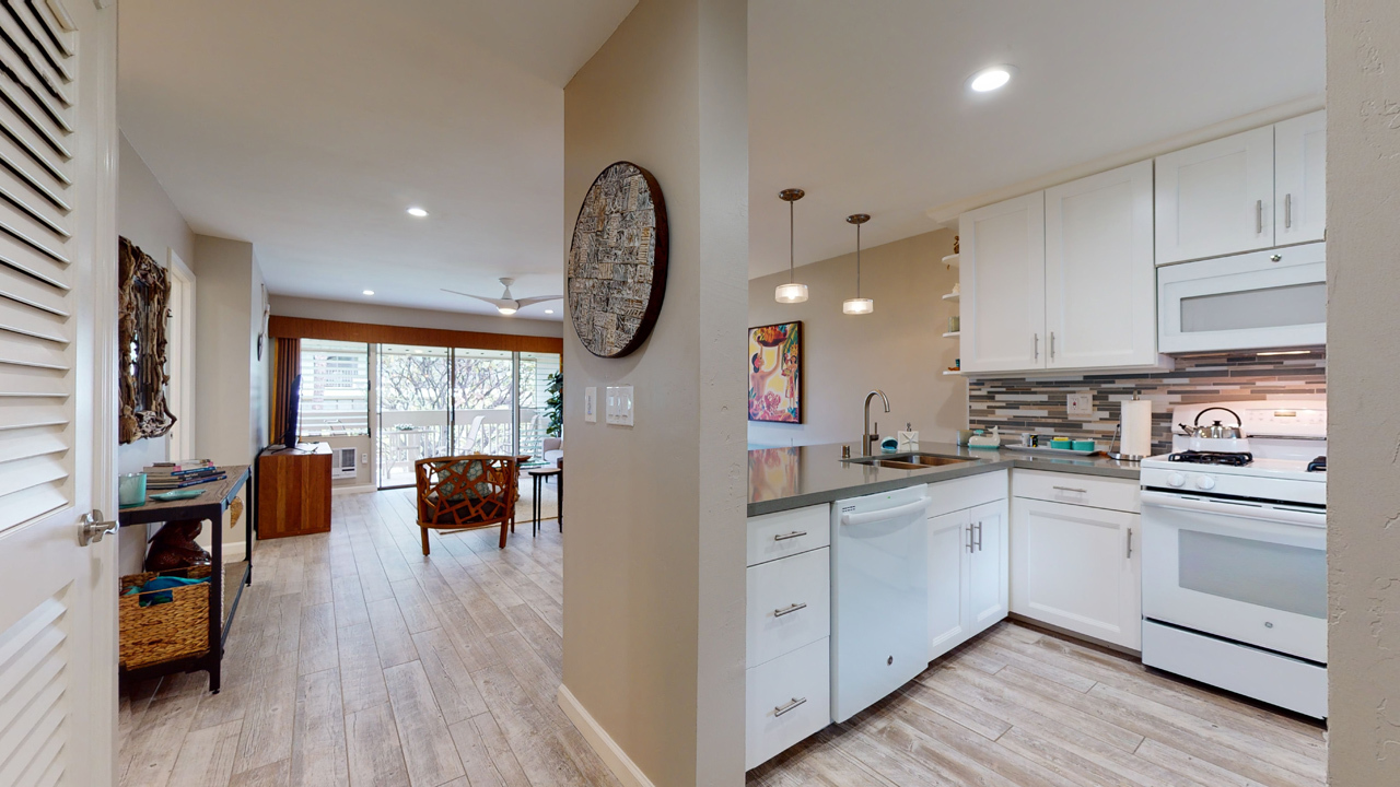 Exciting opportunity to own a rarely-available 2br/2ba unit on the second floor in the desirable "B" building. Convenient location for quick and easy access to the pool or take a quick stroll to the nearby sandy beach of Kamaole Beach Park II. The B building is surrounded by lush landscaping and offers relaxing garden views. This unit has been completely remodeled and shows great pride of ownership. Interiors are tastefully modern and create a warm, inviting atmosphere. Brand new appliances featured throughout the kitchen including a gas stove. Elegant Silestone countertop surfaces in the kitchen as well as the bathroom vanity. Tiled walk in shower with custom finishes throughout. Kaba entry locks with convenient Wi-Fi operation. Flooring in the unit is an easy-care porcelain tile with a lovely modern driftwood style. Kihei Akahi is highly regarded as one of the best vacation rental complexes in all of South Maui. Owners have the flexibility to own, vacation, and rent! You and your guests will enjoy the pools, BBQ areas, and the full size tennis court! World Class shopping, tennis, golf, diving, and boating are all very accessible in this highly sought after resort area. Don't miss out on this opportunity to own your perfect piece of paradise!