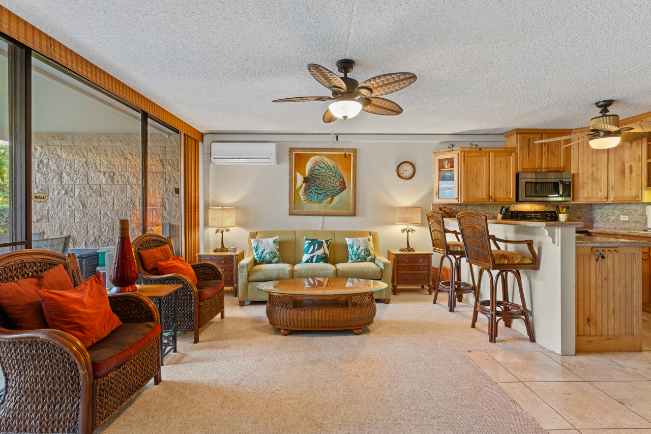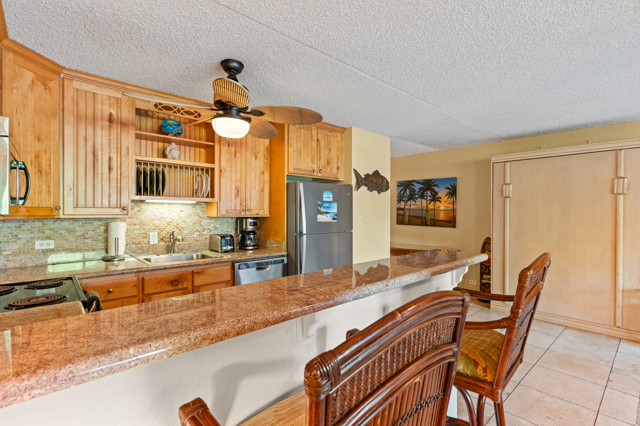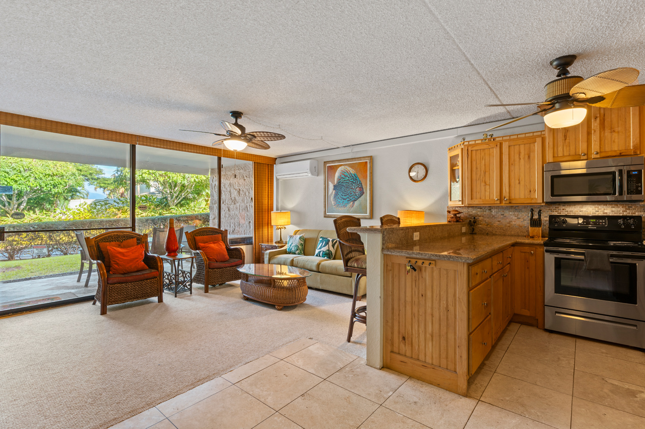 This ground floor, private condo boasts a generous 1-bedroom layout, ideal for vacation rental and personal use. The hidden Murphy bed is ready for those needing additional sleeping options and upgrades throughout the condo make it a comfortable stay for all. Kihei Ali'i Kai is a meticulously managed complex with one of the most central locations in Kihei. Enjoy a range of amenities, from a fantastic BBQ area to a refreshing pool, inviting hot tub, and sauna. Recently added amenities include a brand-new Pickleball court and Shuffleboard area.