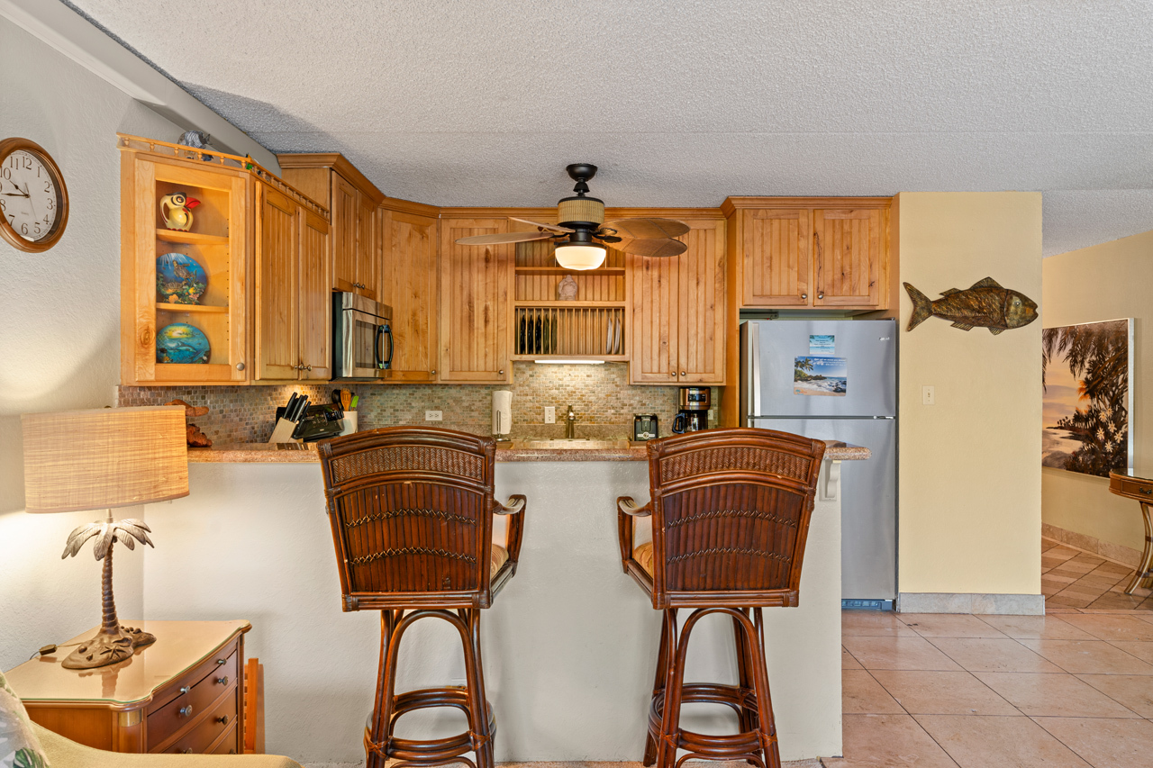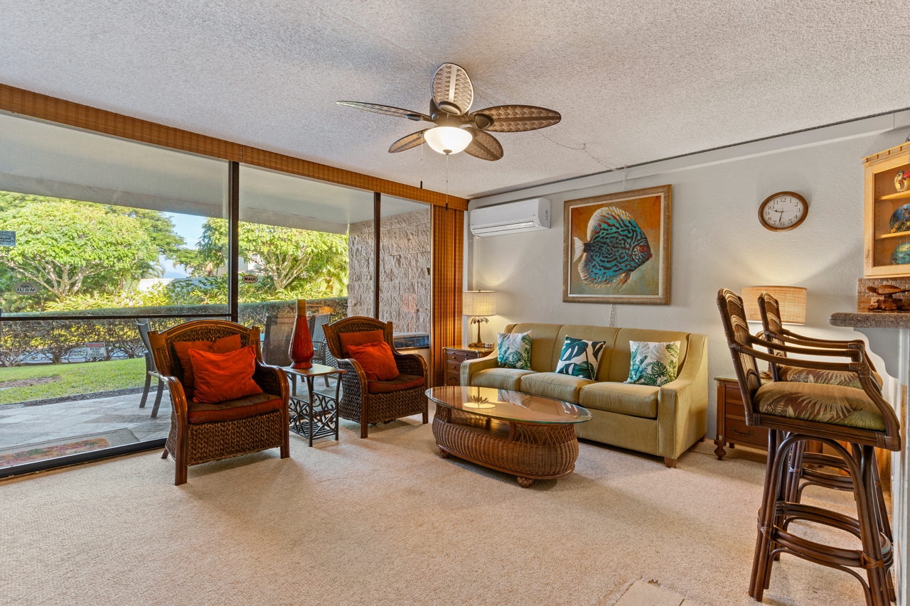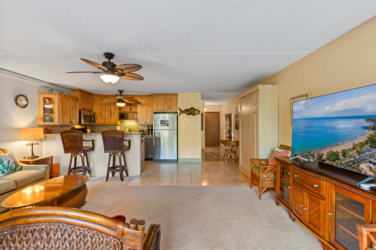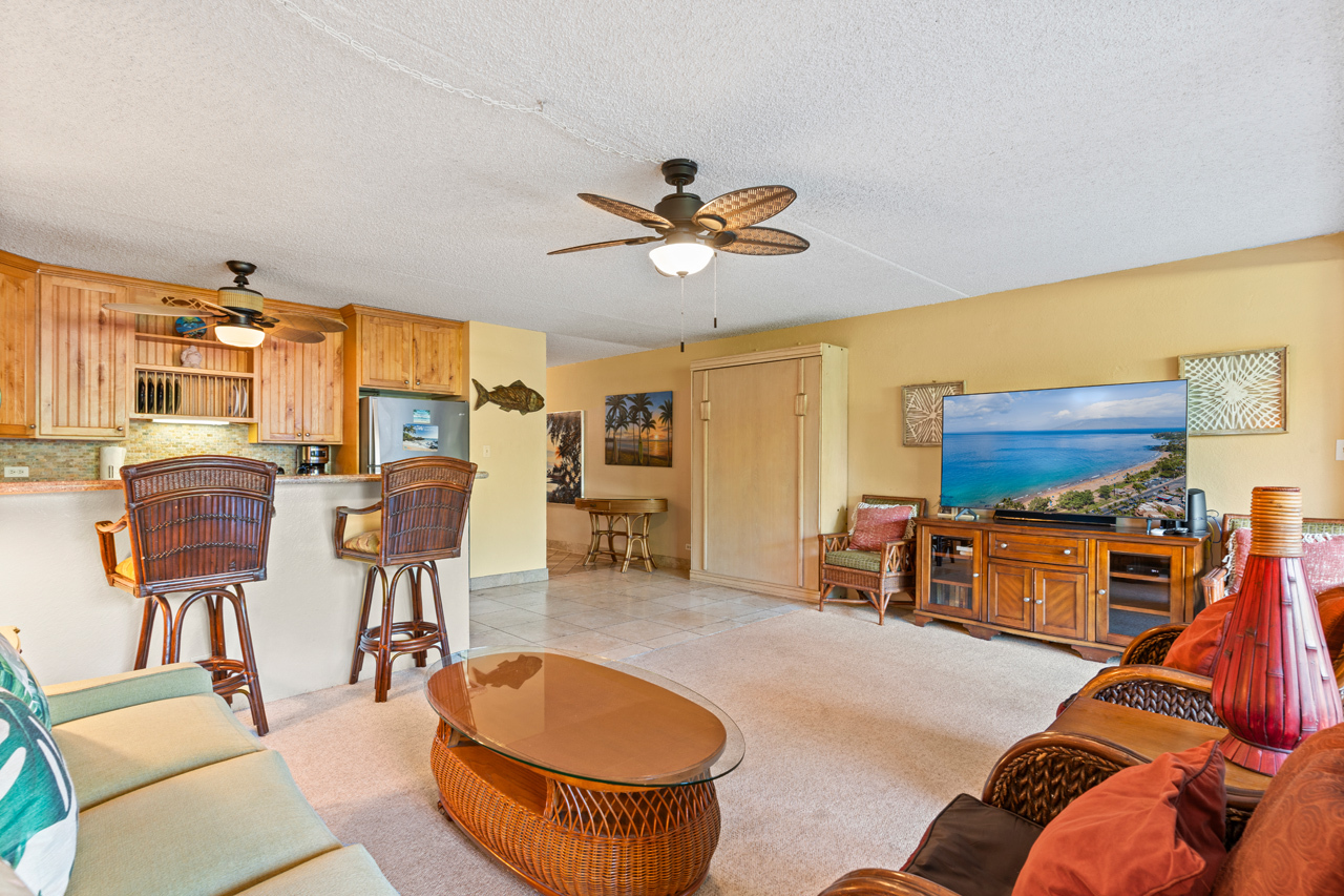 This ground floor, private condo boasts a generous 1-bedroom layout, ideal for vacation rental and personal use. The hidden Murphy bed is ready for those needing additional sleeping options and upgrades throughout the condo make it a comfortable stay for all. Kihei Ali'i Kai is a meticulously managed complex with one of the most central locations in Kihei. Enjoy a range of amenities, from a fantastic BBQ area to a refreshing pool, inviting hot tub, and sauna. Recently added amenities include a brand-new Pickleball court and Shuffleboard area.