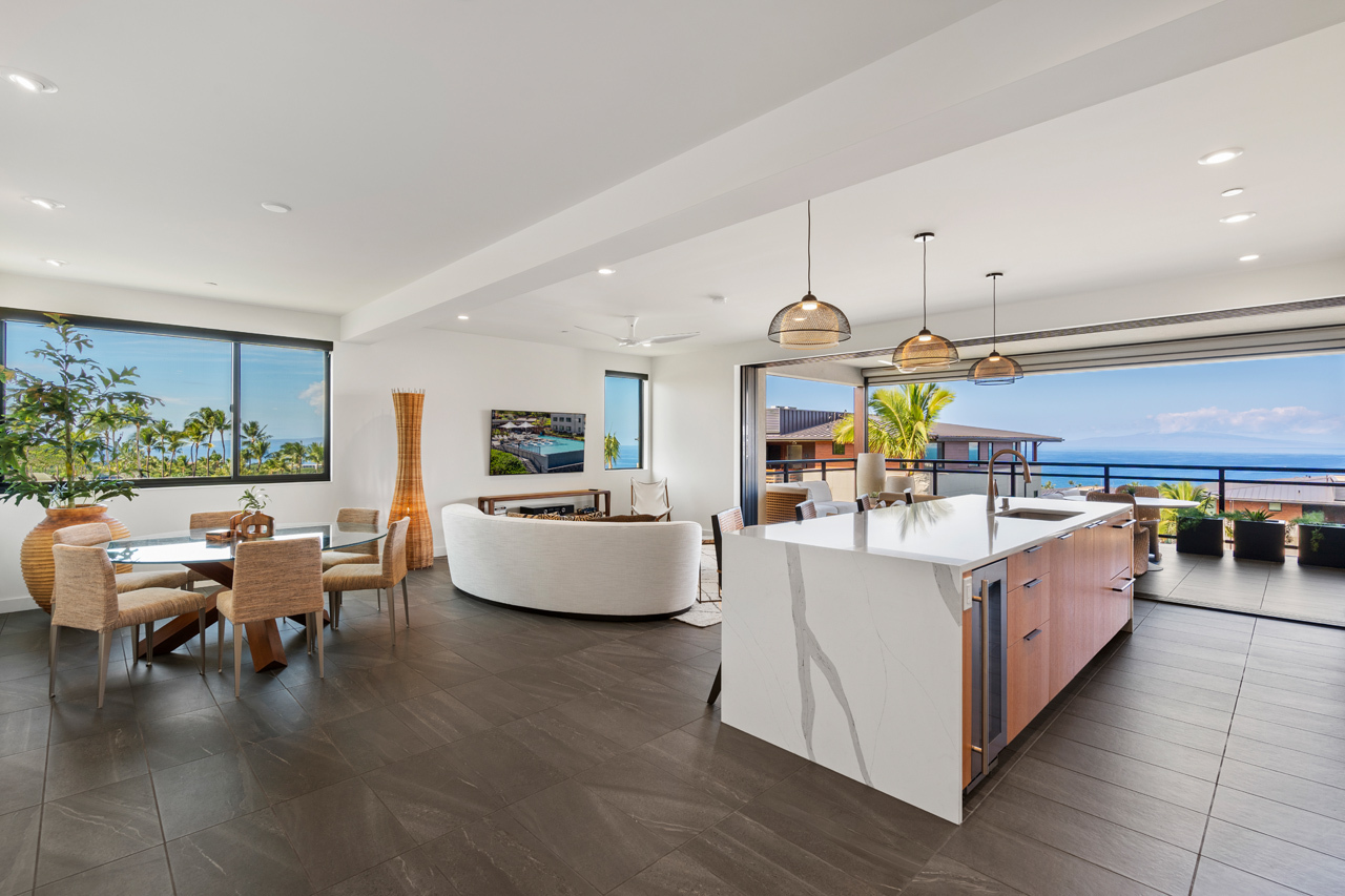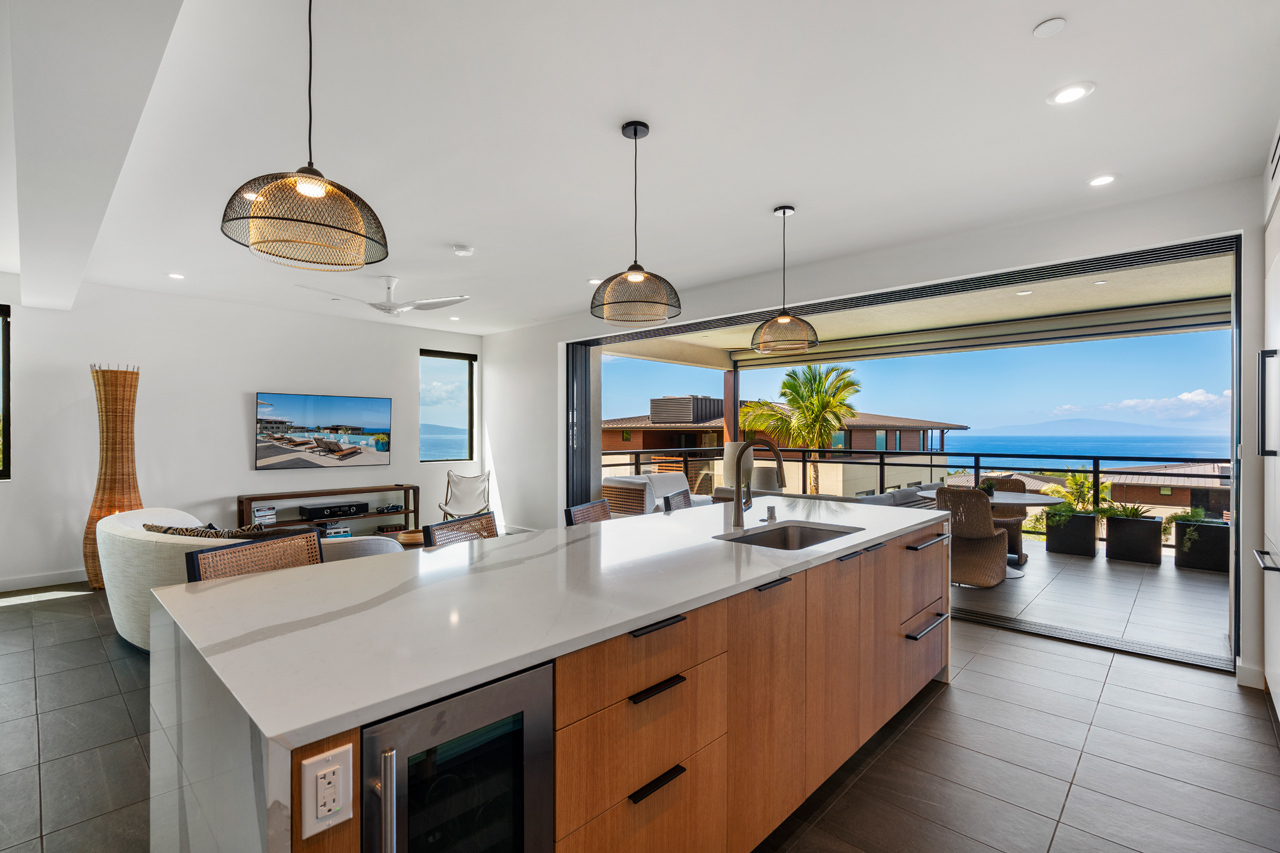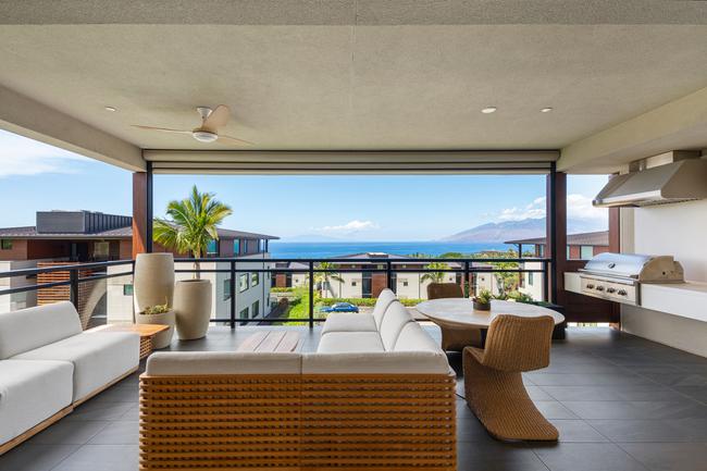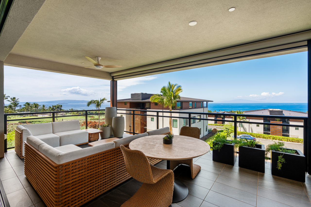 The one you’ve been waiting for at La'i Loa! Pride of ownership shines in this premier 3 bedroom, 3 bath villa, set in the most coveted location of the community. Villa 4C (aka 30-201) offers epic ocean and golf course views and allows you to enjoy one of the closest proximities to the exclusive recreational center. Blending elegance and comfort, the spacious open concept layout features upgraded tile flooring which flows gracefully to the two covered lanais. The main lanai is perfect for year-round outdoor living and entertaining where you can savor unforgettable sunsets paired with great meals prepared on the built-in Coyote gas grill. The chef-inspired kitchen is appointed with Bosch stainless appliances, Fisher & Paykel double dishwasher, U-Line wine cooler, custom cabinetry, and a dramatic quartz waterfall island with bar seating and pendant lighting. The primary suite is a relaxing private sanctuary with its own lanai and privacy shade screen. This villa has been very gently lived in and further enhanced with upgrades such as Lutron programmable lighting, custom electronic blinds, Hansgrohe fixtures, Toto toilets, and a Rinnai on-demand hot water system. Custom furnishings designed specifically for this villa are also negotiable. A secure garage with an EV charging capability, large storage room and an additional assigned parking stall provide everyday convenience. Owners at La‘i Loa enjoy an infinity edge pool with a lap lane, an oversized hot tub, and a modern fitness center all just steps away from your villa. Nearby are all of Wailea’s many resort amenities including some of the best beaches on Maui, elite shopping opportunities, first class restaurants, golf and tennis. Special properties like this rarely become available.