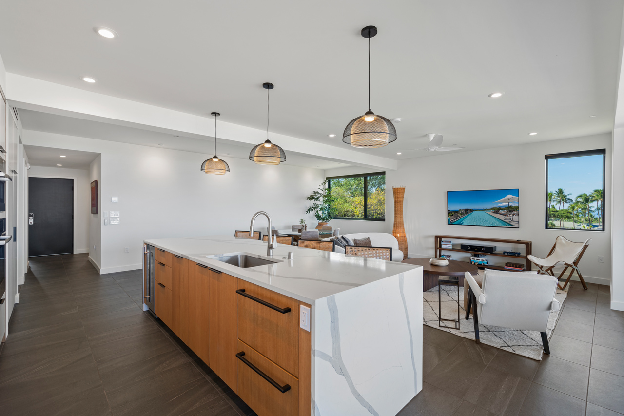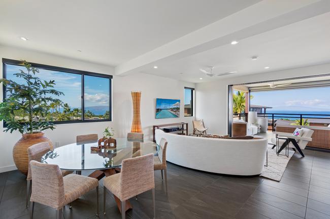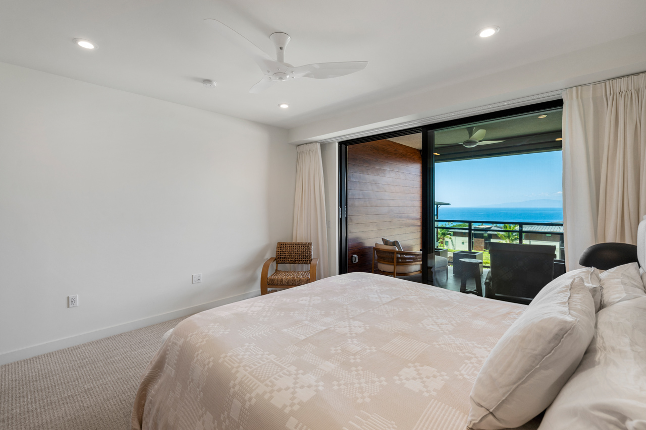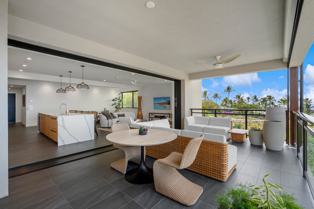 The one you’ve been waiting for at La'i Loa! Pride of ownership shines in this premier 3 bedroom, 3 bath villa, set in the most coveted location of the community. Villa 4C (aka 30-201) offers epic ocean and golf course views and allows you to enjoy one of the closest proximities to the exclusive recreational center. Blending elegance and comfort, the spacious open concept layout features upgraded tile flooring which flows gracefully to the two covered lanais. The main lanai is perfect for year-round outdoor living and entertaining where you can savor unforgettable sunsets paired with great meals prepared on the built-in Coyote gas grill. The chef-inspired kitchen is appointed with Bosch stainless appliances, Fisher & Paykel double dishwasher, U-Line wine cooler, custom cabinetry, and a dramatic quartz waterfall island with bar seating and pendant lighting. The primary suite is a relaxing private sanctuary with its own lanai and privacy shade screen. This villa has been very gently lived in and further enhanced with upgrades such as Lutron programmable lighting, custom electronic blinds, Hansgrohe fixtures, Toto toilets, and a Rinnai on-demand hot water system. Custom furnishings designed specifically for this villa are also negotiable. A secure garage with an EV charging capability, large storage room and an additional assigned parking stall provide everyday convenience. Owners at La‘i Loa enjoy an infinity edge pool with a lap lane, an oversized hot tub, and a modern fitness center all just steps away from your villa. Nearby are all of Wailea’s many resort amenities including some of the best beaches on Maui, elite shopping opportunities, first class restaurants, golf and tennis. Special properties like this rarely become available.