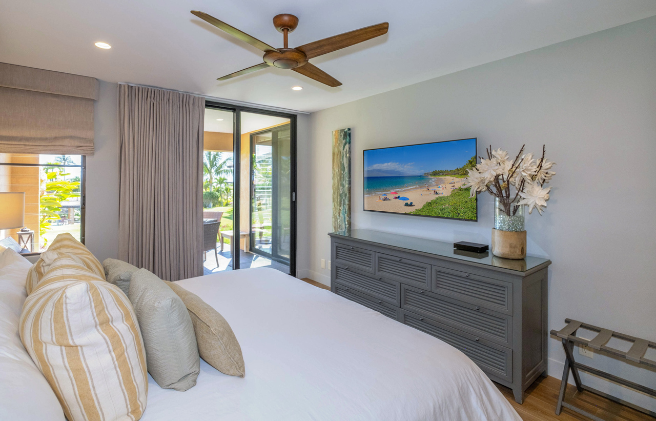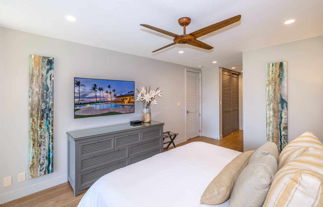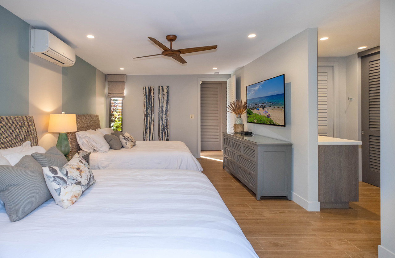 Absolutely stunning 2 bedroom Wailea Ekahi villa with every upgrade imaginable! The villa has been transformed through an extensive designer remodel, achieving a stunning and expansive modern aesthetic, illuminated with the tranquil hues of the seaside. Every detail has been meticulously curated in this luxurious renovation, making it an ideal sanctuary for a rejuvenating island getaway. Iconic properties such as this one rarely become available. This is the crown jewel of Ekahi. Nestled on the serene greenbelt, Ekahi 28A boasts an excellent location in the lower village. Step inside to discover a living space where perfection meets sophistication. The entire interior has been updated to the highest standards with a modern yet relaxed and comfortable design. No expense was spared in transforming this villa into a haven of luxury. The layout has been thoughtfully redesigned to enhance flow, functionality, and visual appeal. Impeccable quality is evident in every corner. The kitchen is a chef's dream, featuring new top-of-the-line appliances and premium finishes. The opulent primary suite boasts a king-sized bed, privacy curtains, an en-suite bathroom with a walk-in shower, and a secluded lanai. A spacious secondary primary suite offers two queen beds, privacy curtains, a private bathroom with a combined tub and shower, and a tranquil garden lanai exclusively for your enjoyment.The bathrooms have been transformed into spa-like retreats, featuring high-end fixtures and exquisite tile work. Stay cool and comfortable year-round with the new split AC system. Literally, every aspect of this villa has been professionally addressed and upgraded. It's being offered completely turnkey by the sellers, and ready for you to enjoy. Wailea Ekahi offers world-class amenities, including direct access to Keawakapu Beach, multiple pools, pickleball courts, edible landscaping, and meticulously manicured grounds. This is the epitome of island living at its finest.